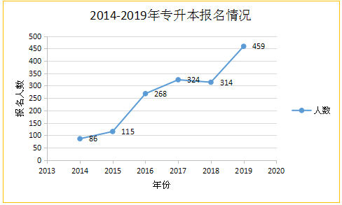 我校2019届预计毕业生人数为2126人,“专升本”报名人数占21.25%,比去年增加6.37%。可见,不管是“专升本”报名的绝对数还是占比都出现持续不断攀升的良好势头。这主要得益于我校的高度重视,与学校、二级学院的广泛宣传、科学组织密不可分。学生处通过始业教育、专场讲座、展板宣传、建立QQ群、微信公众号推送等方式,从新生入学起,就营造“专升本”氛围,引导、鼓励优秀学生积极报考“专升本”。在“专升本”志愿填报期间,学生处安排老师负责答疑,为学生提供报名指导、考试、志愿填报指导、政策讲解等相关服务,使每个专业的学生都有更多选择报考的学校。