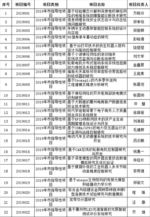 近日,衢州市科学技术局下达了2019年度衢州市第一批科技计划指导性项目的通知,我校22位教师的项目获得立项。希望各项目负责人尽快组织开展研究,按照课题研究目标高质量完成研究工作,研究成果必须与研究内容一致,成果标注“2019年衢州市科技计划指导性项目(项目编号)”,保障顺利结题。