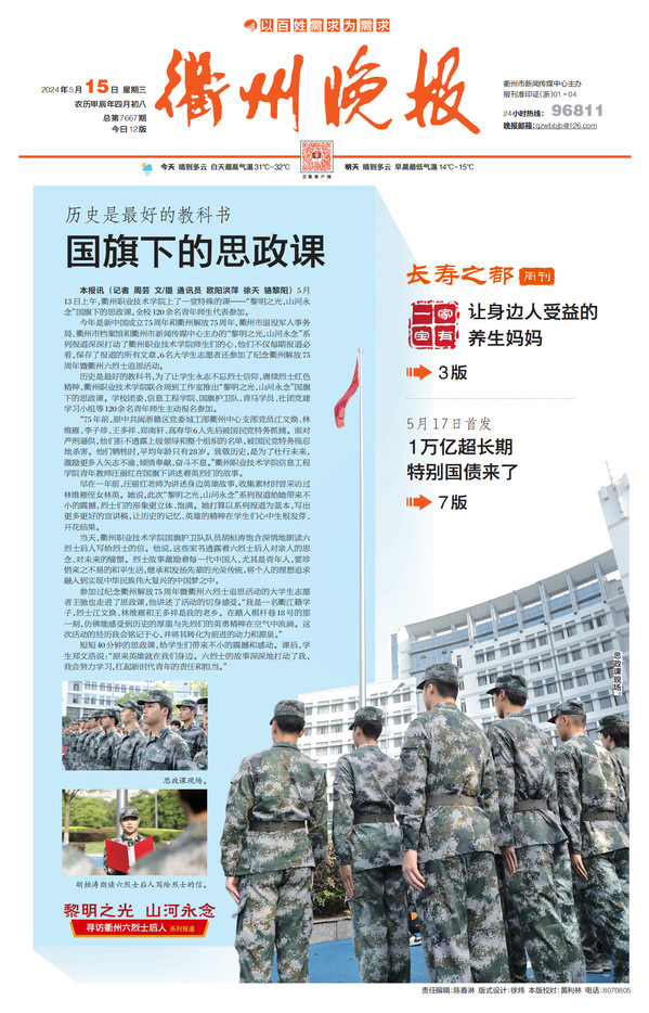 《衢州晚报》头版2024年5月16日 报道 本报讯 (记者 周芸 文/摄 通讯员 欧阳洪萍 徐天 骆黎阳)