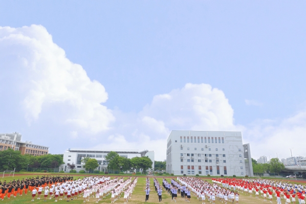 在集体大型健身操表演中,同学们以整齐划一的动作、激情满怀的姿态,展现了衢职学子积极向上的精神风貌和对健康生活的热爱追求。
