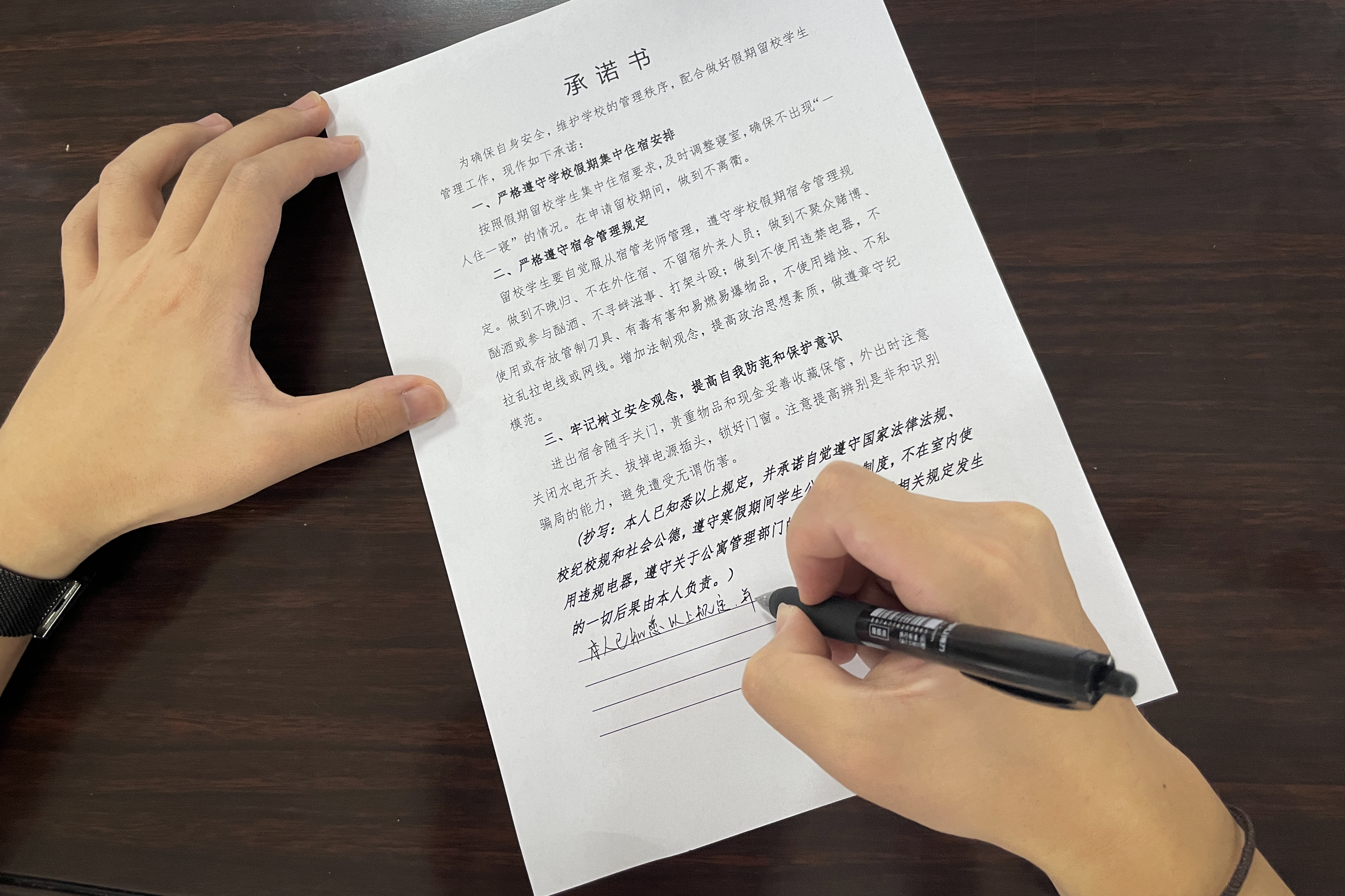 会前,学院组织留校学生签订《2024年暑期学生留校承诺书》,建立学院暑假留校学生钉钉群,熟悉暑期留校的有关要求,明确暑期留校学生管理的有关老师。