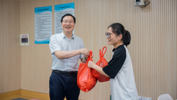 7月22日,校党委书记徐须实走访慰问暑期在校筹备教学能力比赛的团队老师,校党委委员、副校长姚水洪,办公室主任倪立宠,教务处长王建陪同.