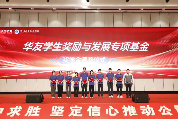 黄利俊总经理、穆金泉总经理为获得华友新材料学院专项奖学金的学生代表颁奖。