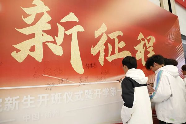 吕延文讲话。他希望同学们珍惜学习机会,谨记“尚德弘毅、知行合一”的校训,践行华友校企文化,以良好的精神风貌和严谨的求学态度投入到学习中,努力将自己培养成有素质、有特质、有潜质的高素质技术技能人才。希望全体教师团队,遵循产教全要素融合的办学理念,积极实施“专业建设+人才培养+师资队伍+实践基地+教学资源”五位一体共建共享、协同发展的布局,强化与华友衢州园区的合作,加强现代学徒制人才培养,积极推进现场工程师项目,构建“素质基础、能力核心、工学结合”的人才培养模式,推动现代职业教育与化工新材料产业需求精准对接、深度融合。希望华友集团与衢职院迈向更深层次、更广领域的紧密协作,通过持续提升合作办学的质量,进一步增强服务产业和地方经济社会发展的融合效果,为我市实施“工业强市、产业兴市”战略以及建设四省边际中心城市贡献更大的力量。