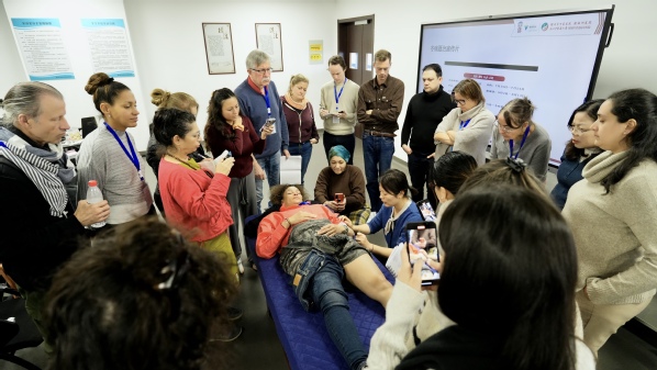 首批来自瑞典斯德哥尔摩的22名国际学生来校进行针灸推拿培训,针灸推拿专业的老师们全英文呈现一堂又一堂丰富多彩的中医药理论课,带领学员们沉浸式体验中医药文化的魅力,感受推拿舒经活络、针灸调理气血、拔罐散寒止痛、刮痧活血化瘀等中医精髓。其他专业来校培训的60余名国际学生参与了一系列杨继洲针灸技艺展示、中药材识别、八段锦学习等文化体验活动,让学员们见识“神奇的东方力量”。