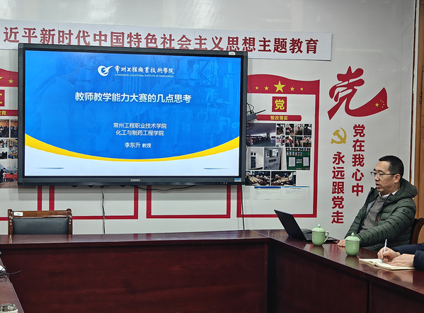 常州工程职业技术学院化学工程学院李东升院长从认识大赛,材料要点,备赛要点三个方面分享了教师教学能力大赛的经验与思考。指出参与教学能力大赛,首先要做到认识大赛,要坚持以赛促教,以赛促学,以赛促改,以赛促研,着重突出立德树人,做到真实,务实,朴实。最后,李东升院长还对我院参赛团队进行了点对点指导。