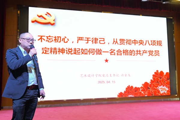 4月15日中午,艺术设计学院党总支书记许金友以“不忘初心,严于律己,从贯彻中央八项规定精神说起如何做一名合格的共产党员”为题讲授党课。
