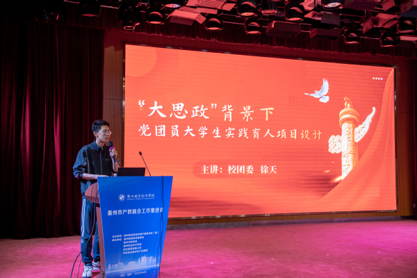 4月17日晚,校团委书记徐天以“衢职先锋青年践行——‘大思政’背景下党团员大学生实践育人项目设计”为题讲授党课。