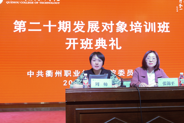 周帅作动员讲话,从“从筑牢信仰根基,找准青春奋斗方向”、“锤炼实践本领,争当德技并修标杆”、“严守纪律底线,擦亮先锋党员本色”三个方面对培训班学员提出要求。